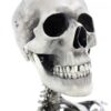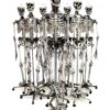 Hanging Skeleton Prop to hire. The skeleton is supplied with a stand on wheels and is a great prop to hire for any Halloween or Pirate party or event.