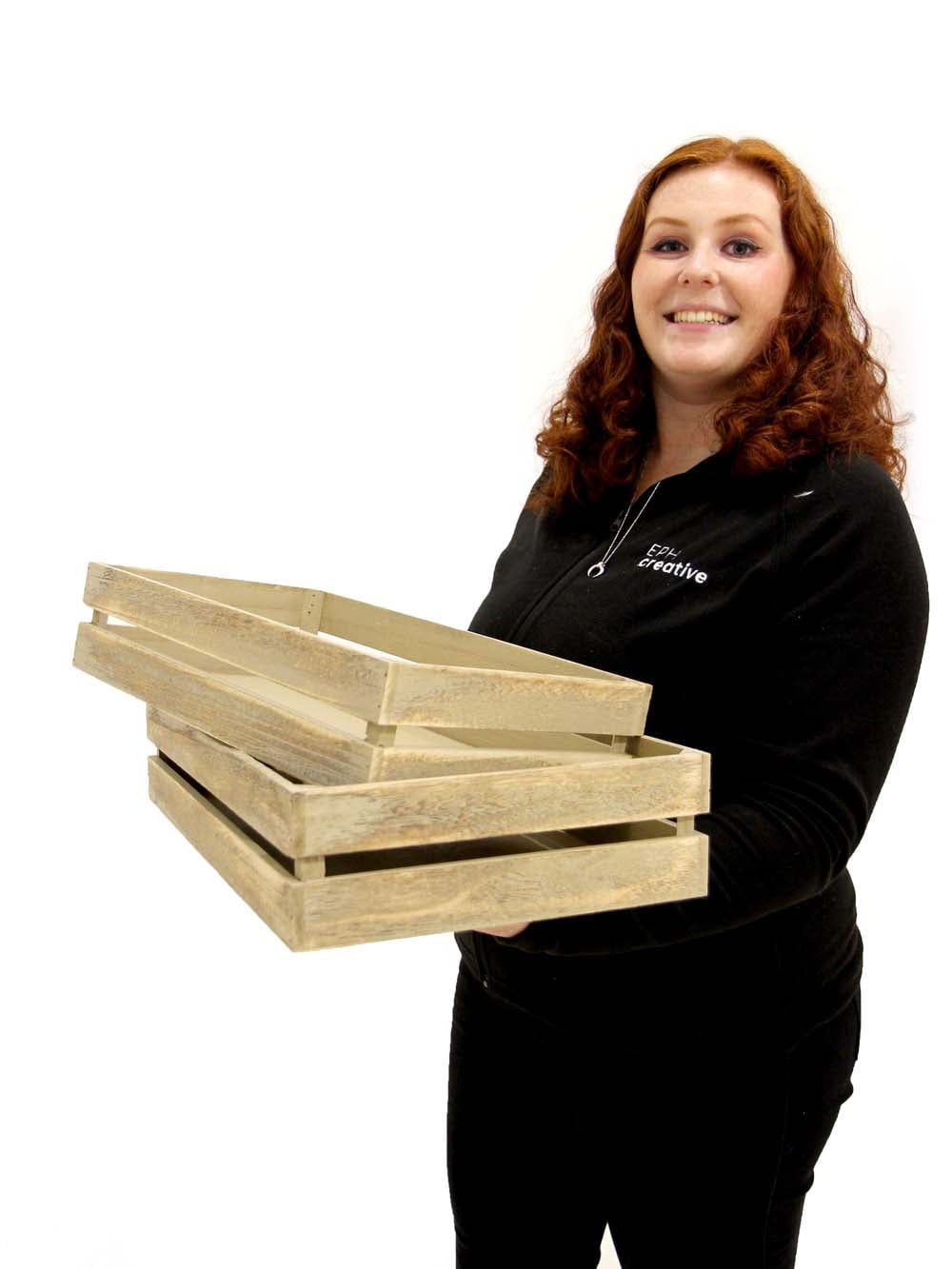 Natural Wooden Crates to hire. A perfect addition to create a Dockland, Industrial or Rustic Caribbean look at your party. These Natural Wooden Crates are great for dressing to fill with small props, foliage to create an industrial look. The hire price is for a set of 2 crates.