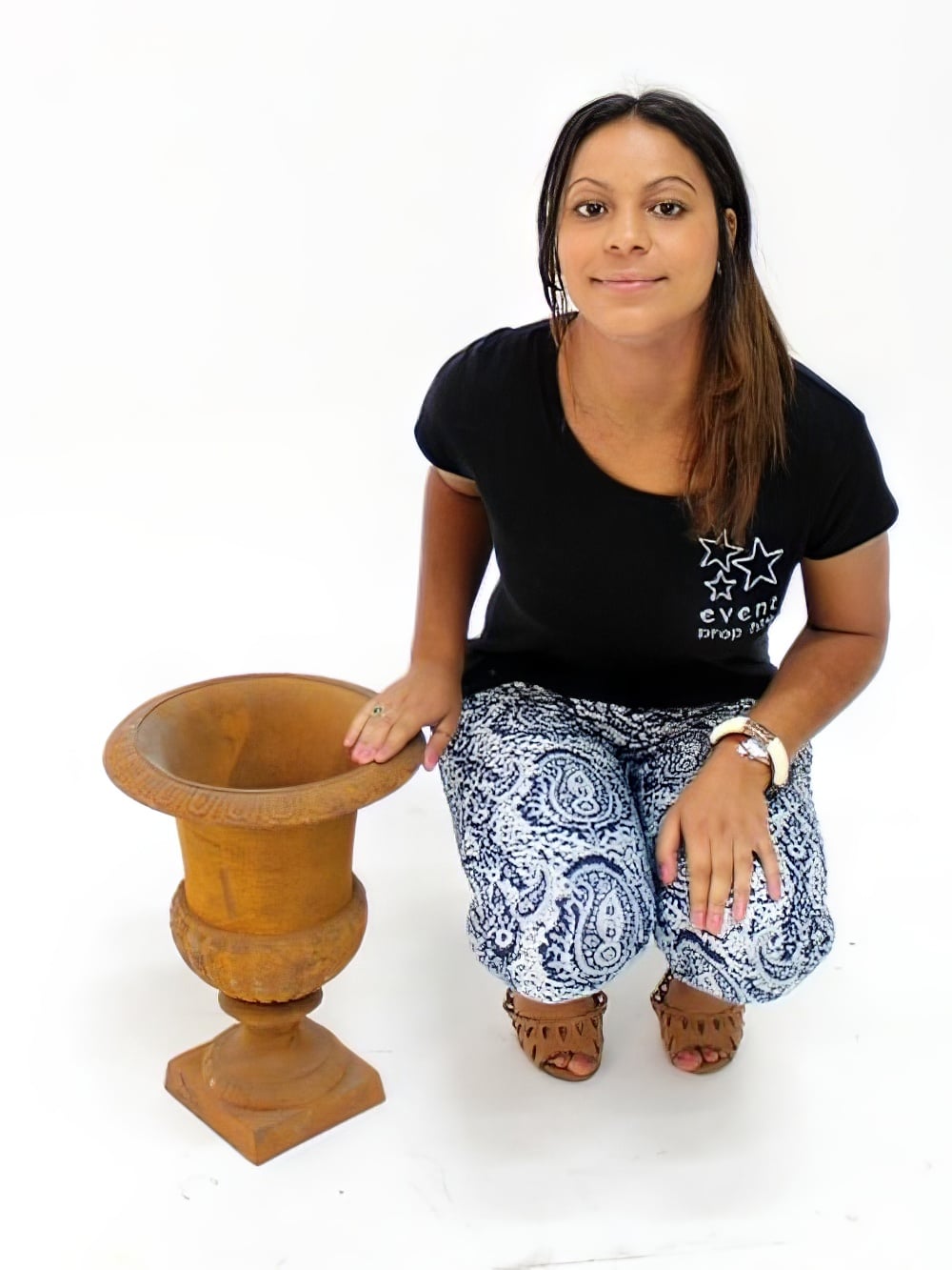 Small cast iron Urn with rust finish. ย  The Prop is fully 3D and available to hire from us. The urn is vintage and rustic in appearance. Each one is slightly different in finish colour due to rusting effect. Each one is slightly different in finish colour due to rusting effect.
