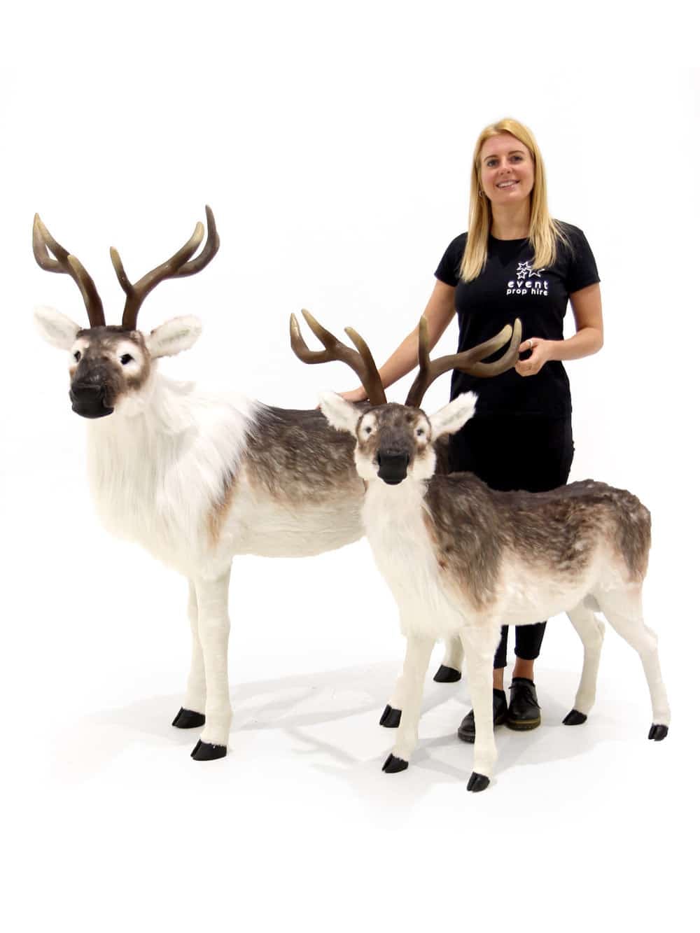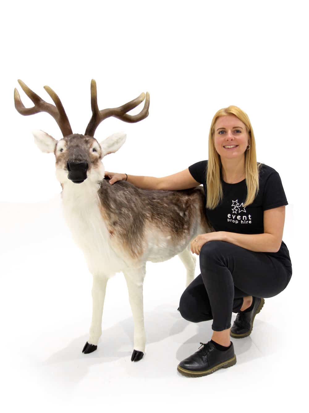 Freestanding small furry reindeer prop to hire. This lovely reindeer will be perfect for your Winter Wonderland or Christmas themed party or event. We also have a larger version (pictured) so why not hire the two together?