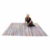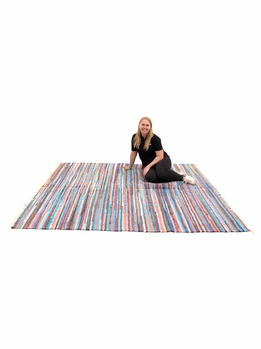 Multi-Coloured Rectangular Rag Rugs 1.8m x 1.2m. Woven rag rugs, in bright multi coloured fabric colours. These rugs look great layered with other sizes or other rugs. Pair with furniture and plants, for your chill area or under tables and chairs. Add a Boho, relaxed feel to your event, with rugs and floor cushions. Add a Boho, relaxed feel to your event, with rugs and floor cushions.