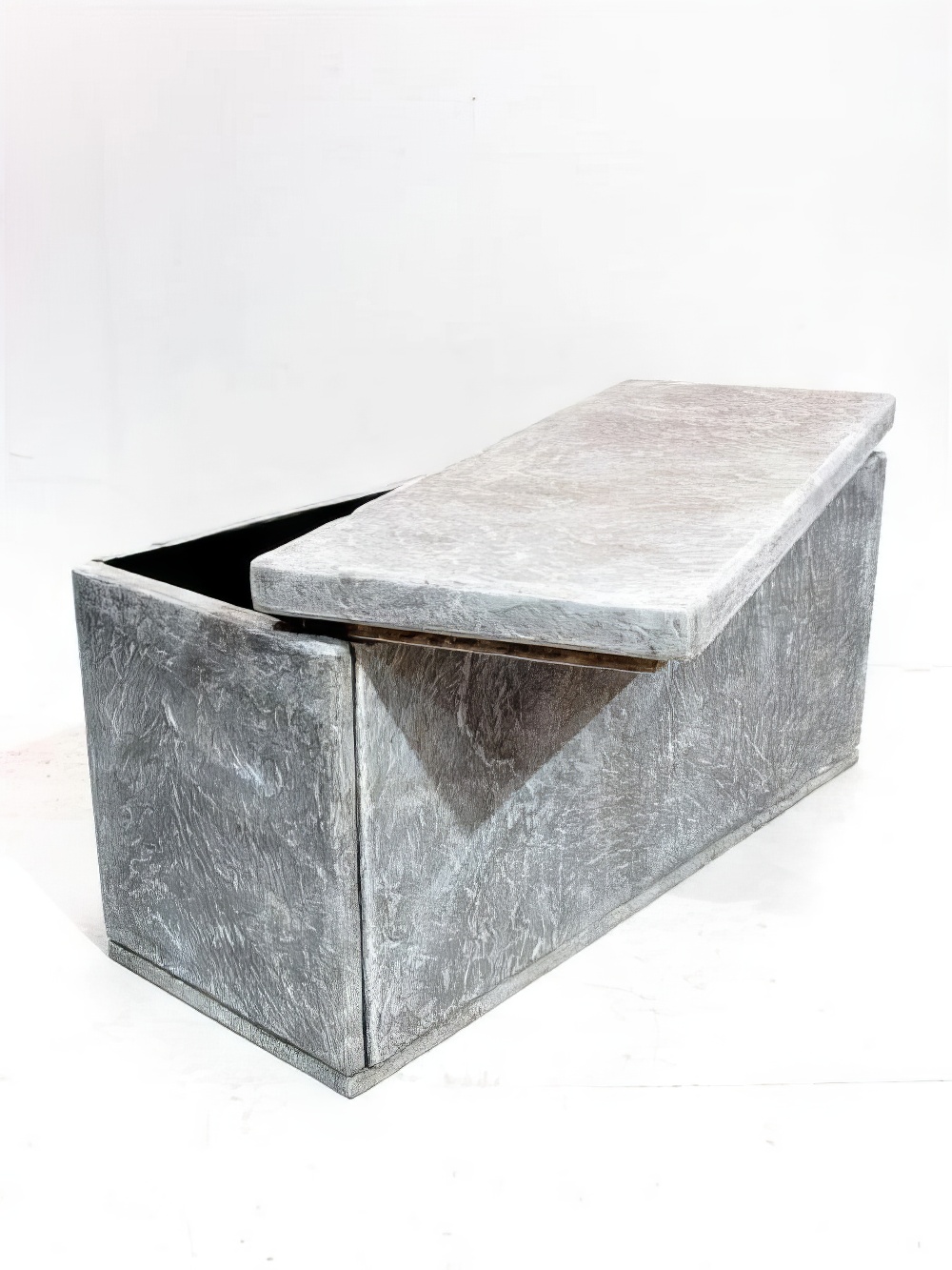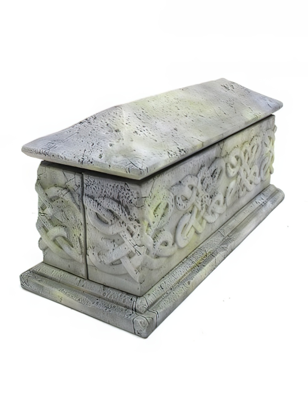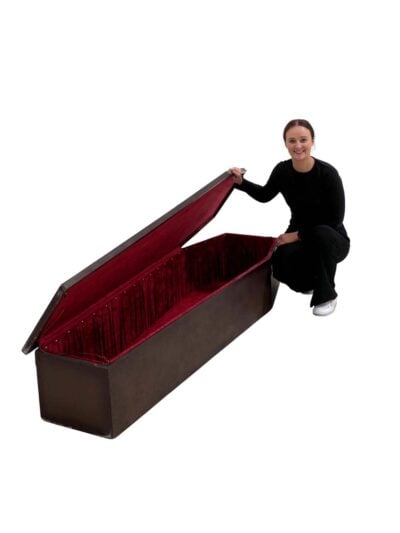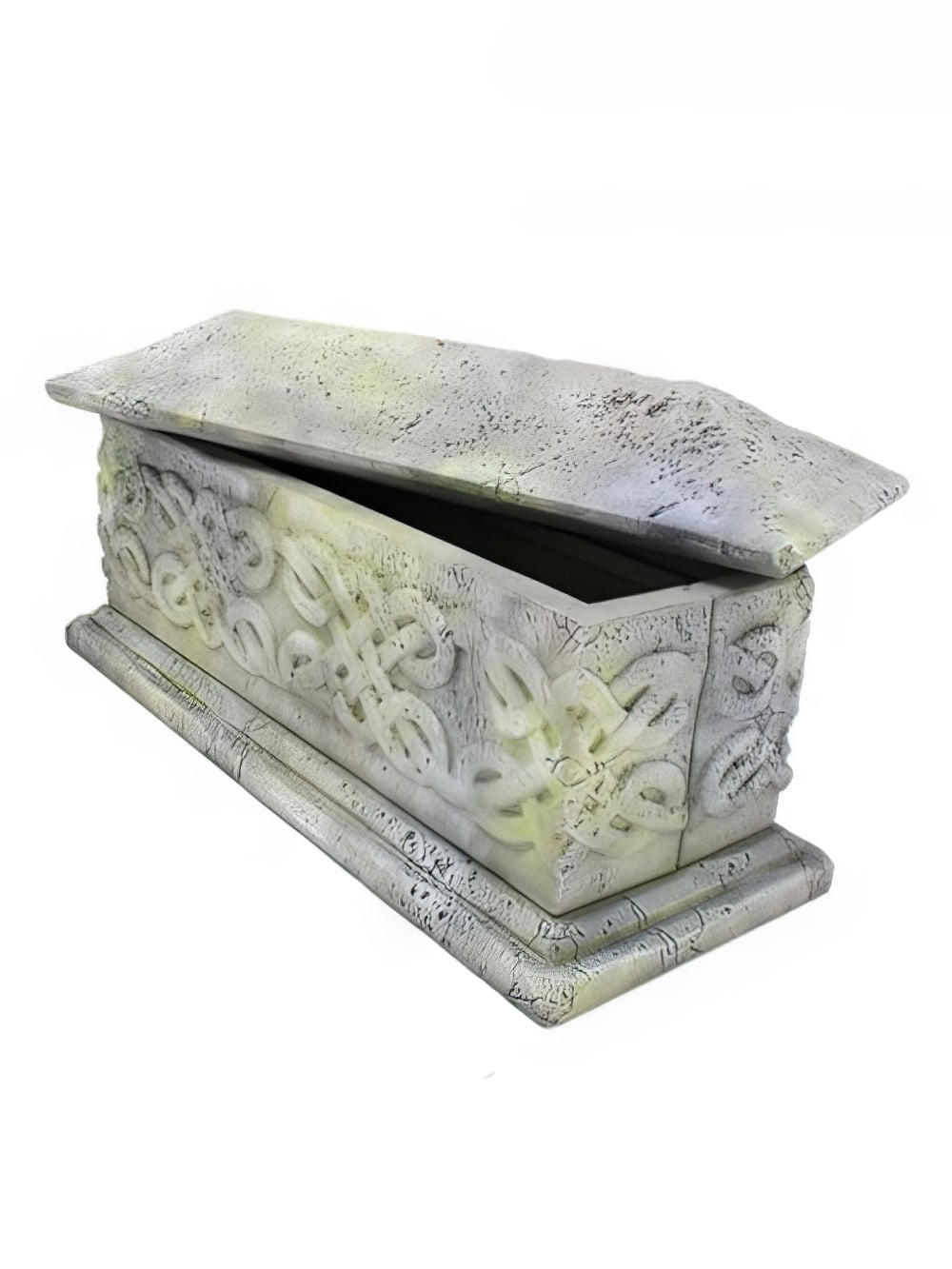 Stone Effect Coffin for hire. This coffin will look amazing hired with some of our gravestones to create an ultra-realistic grave yard at your event or party. And even better, the lid of the coffin is removable ย so your guests are welcome to lie inside the coffin for a freaky photo opportunity!