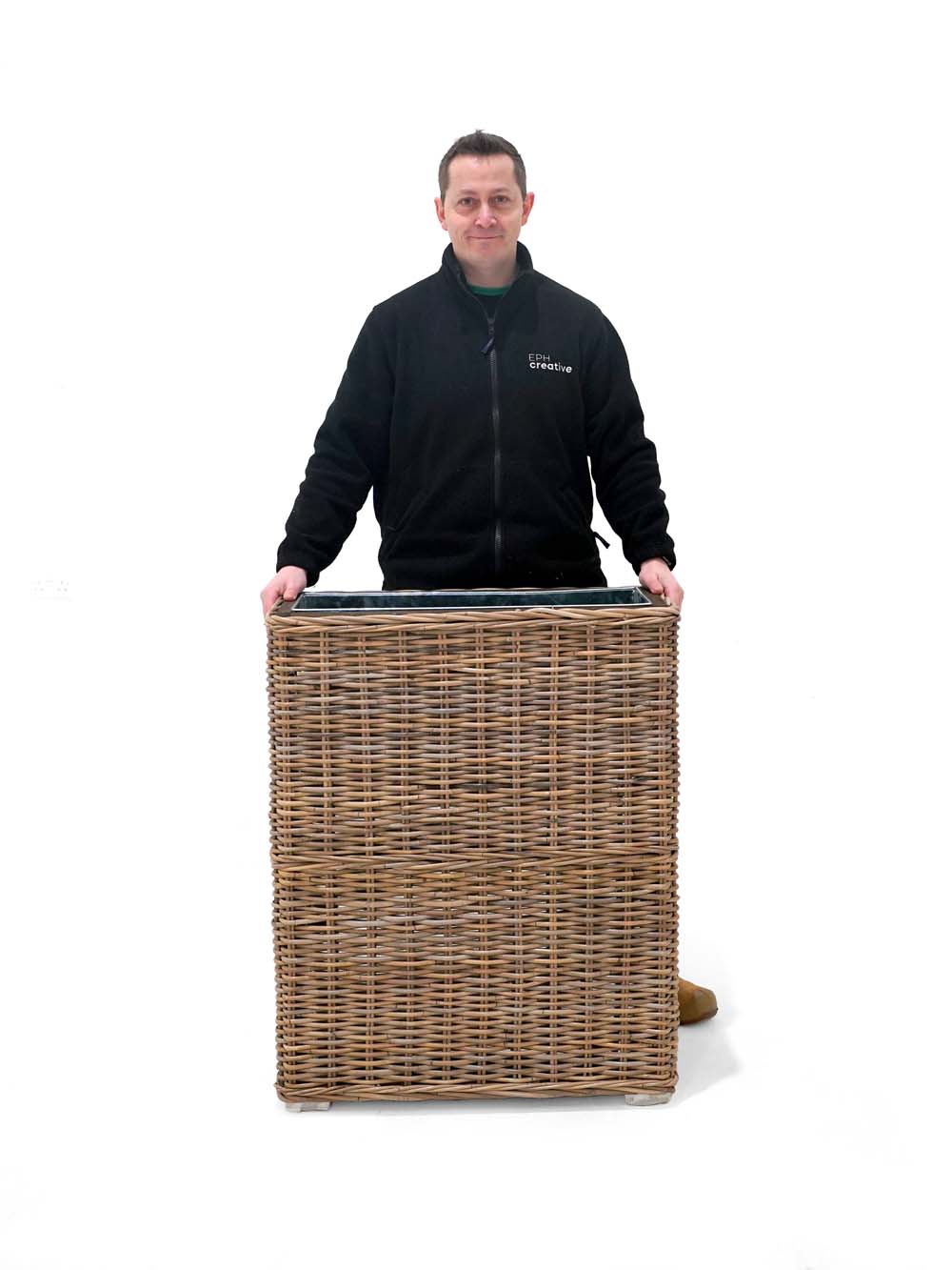 Tall Rectangular Wicker Planter for hire. Enhance your event space with our Tall Rectangular Wicker Planter. This versatile piece serves as a stylish addition to any setting, whether used to display foliage and wildflowers, create a charming English country garden atmosphere, or act as a separation wall. Crafted with durable wicker material, our planter offers both functionality and aesthetic appeal. Its tall, rectangular design allows for ample space to showcase greenery and floral arrangements, adding a touch of natural beauty to your event decor. Ideal for weddings, garden parties, or reception and welcome areas, our Wicker Planter helps create a serene and inviting ambience. Whether placed along pathways, used to define seating areas, or incorporated into photo backdrops, it adds visual interest and elegance to any occasion. With its versatility and timeless design, our Tall Rectangular Wicker Planter offers endless possibilities for event customisation. Whether you’re aiming for a rustic countryside charm or a classic English garden aesthetic, it serves as a versatile and practical element in your event setup.