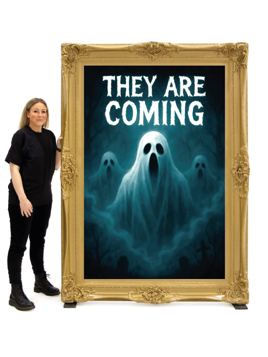They are Coming Halloween Print in Gold Frame. Great theming for Halloween Themed events. Check out the full range of Halloween theme prints in giant frames.