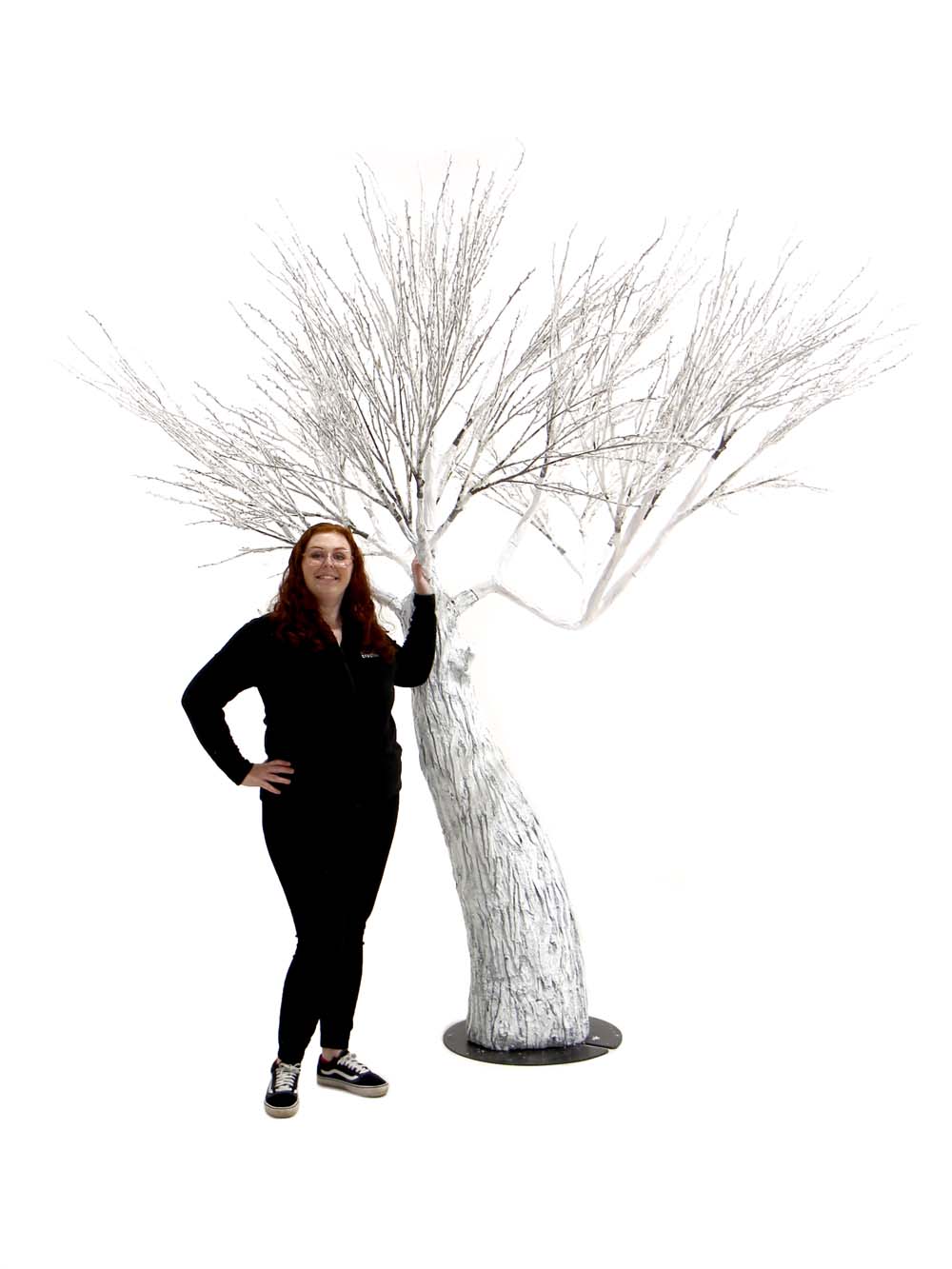 Thick Trunk Tree (2.9m) – White Frosted to hire. This Wintery tree would be the perfect addition to any winter wonderland or Christmassy event.