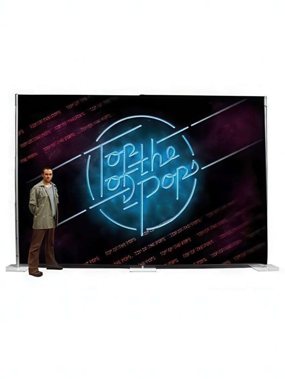 Retro Top of the Pops backdrop prop to hire. Printed on non-creasing, washable HT Polyester, this retro Top of the Pops image is a perfect backdrop to hire for any 1980’s, music or back to school ย  themed party event.
