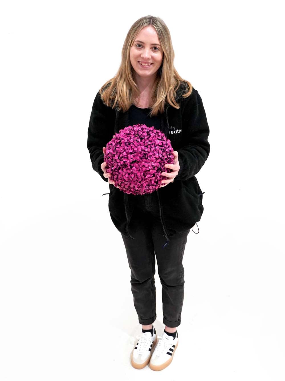 Topiary Boxwood Ball – 25cm – Pink for hire. Step into a storybook setting with our colourful faux topiary balls for hire! Our vibrant spheres add a touch of magic and whimsy to any event. Make an unforgettable statement with these colourful, larger-than-life topiary balls. Their vivid colours transform any space into a wonderland, giving your party or wedding a playful, imaginative feel. Group them together for high visual impact, or place them strategically to guide guests through your venue. Their off-beat beauty and joyful energy are sure to delight. Filled with the spirit of fantasy, our magical topiary balls inspire creativity and fun. From adventures in Wonderland to a chocolate factory of dreams, let your imagination run wild! These whimsical spheres add a touch of surreal wonder to any event. Bright, saturated hues. Sculptural spheres with faux leaves. Multiple sizes to create a custom look and feel.