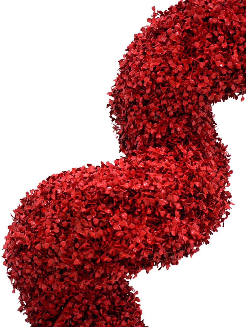 Luxury Topiary Twist ย– Red to hire. Our range of multi-coloured spiral artificial topiary trees are suitable for any themed event or party night where you want bright colours. So if you want a crazy Alice in Wonderland theme party or Willy Wonka themed event or party, these crazy coloured artificial topiary trees will really make a difference!