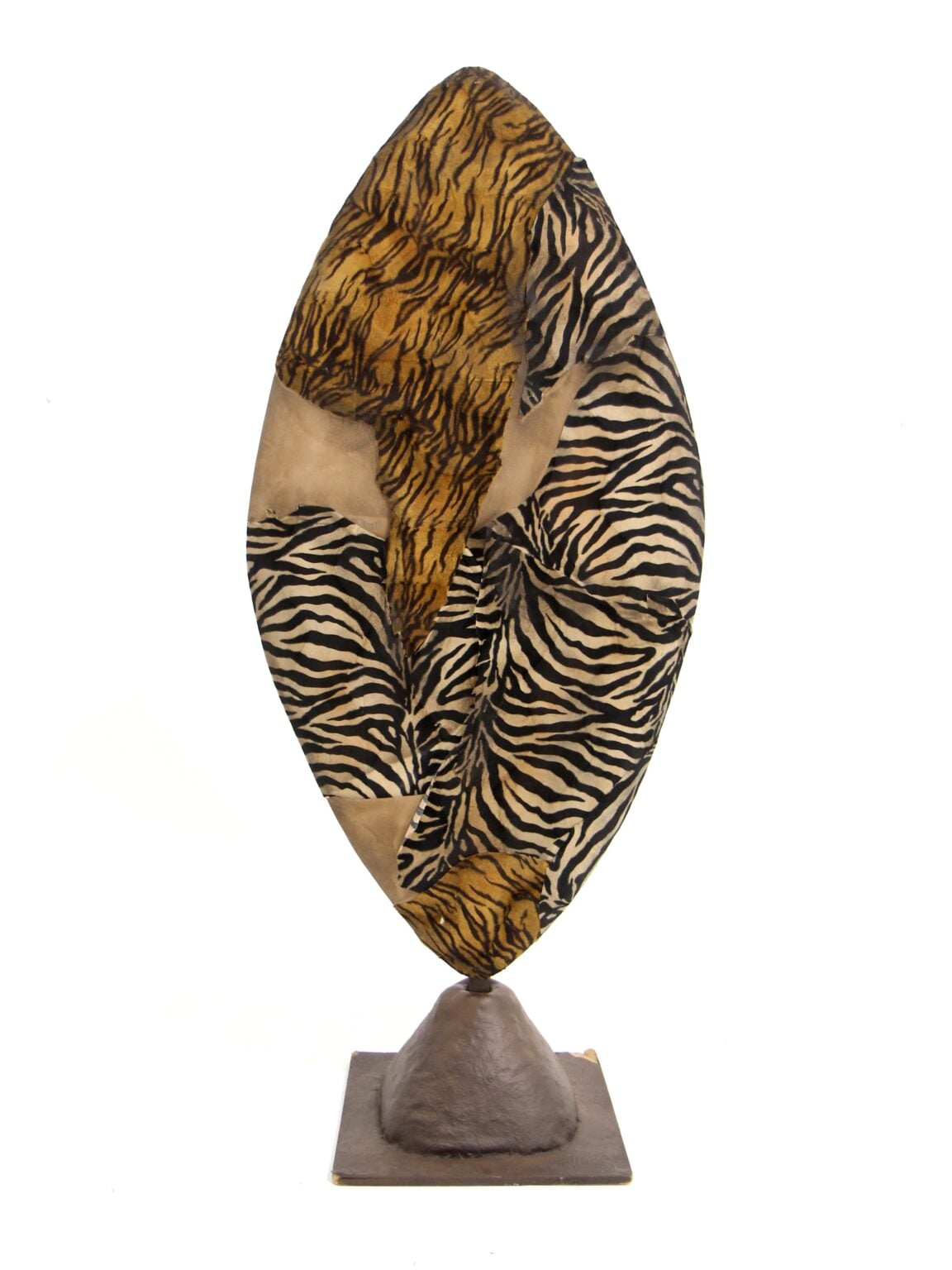 Large Jungle Shield Prop to hire. This jungle shield is finished in a faux animal skin print and is perfect dressing for any Jungle Themed party or event. Hire the shields ย and keep your tribe safe! Please note that the shields are hired singularly ย although a pair is shown here, ย and are supplied on a base.