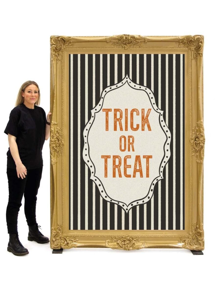 Trick or Treat Halloween Print in Gold Frame. Great theming for Halloween Themed events. Check out the full range of Halloween theme prints in giant frames.