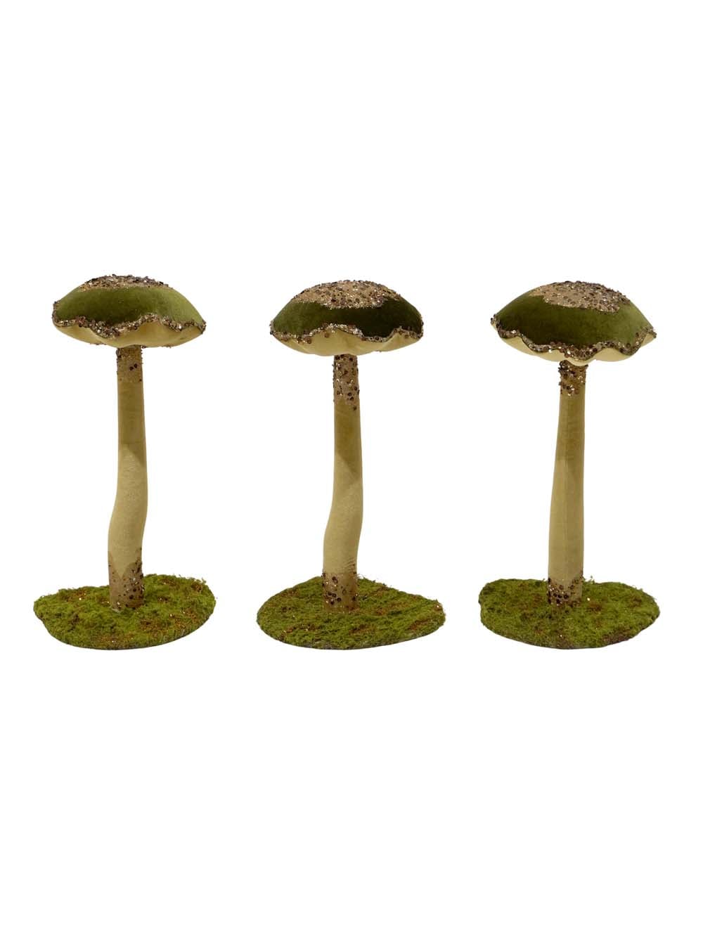 Velvet Glitter Mushroom – Green – Small – Set of 3