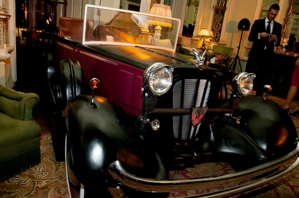 Vintage Car prop to hire. This fully 3d and highly detailed car is perfect prop hire for any 1920’s, 30’s, 40’s or even Gangster themed event party. Car is built is from a flat pack assembly for easy transportation and installation.