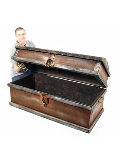 Vintage Circus trunk for hire. Vintage looking wooden circus trunk with vintage artwork and paint.