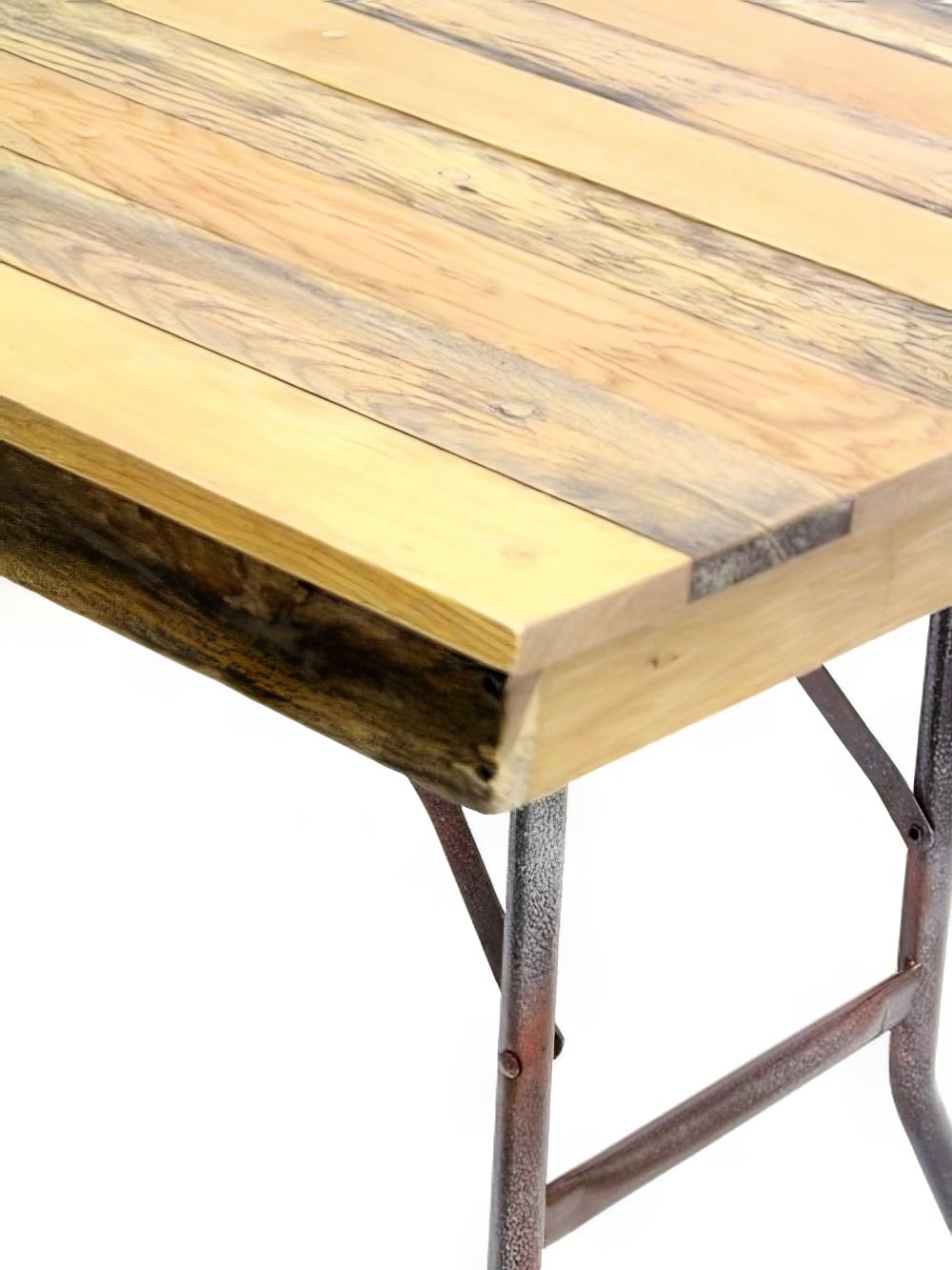 Vintage effect ย 6ft Trestle Table for Hire. This is a lovely traditional vintage style trestle table, useable in any theme – simply pop it up and then dress it any way you want to fit in with your decor or theme.