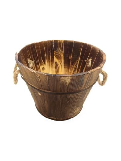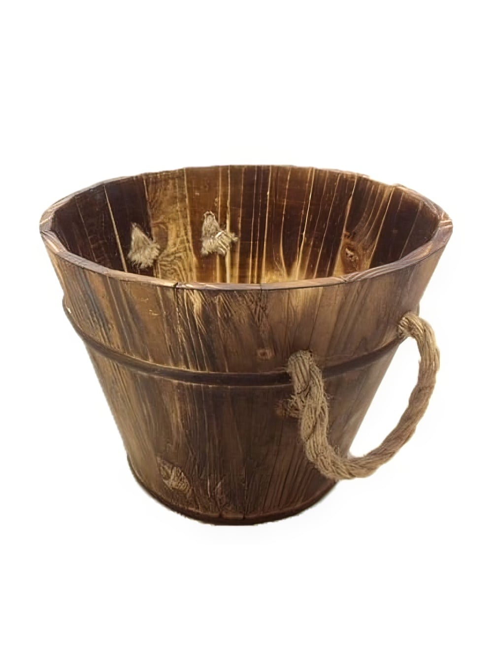 Vintage Wooden Pail to hire. This lovely vintage ย pail is a genuine antique and would look great as a filler item at any Farm, Medieval or African themed event or party.