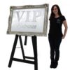 VIP Entrance Sign to hire. This ornately decorated sign is the perfect prop to hire for welcoming your guests in style to you themed event. The frame sits on a freestanding A-Frame easel.