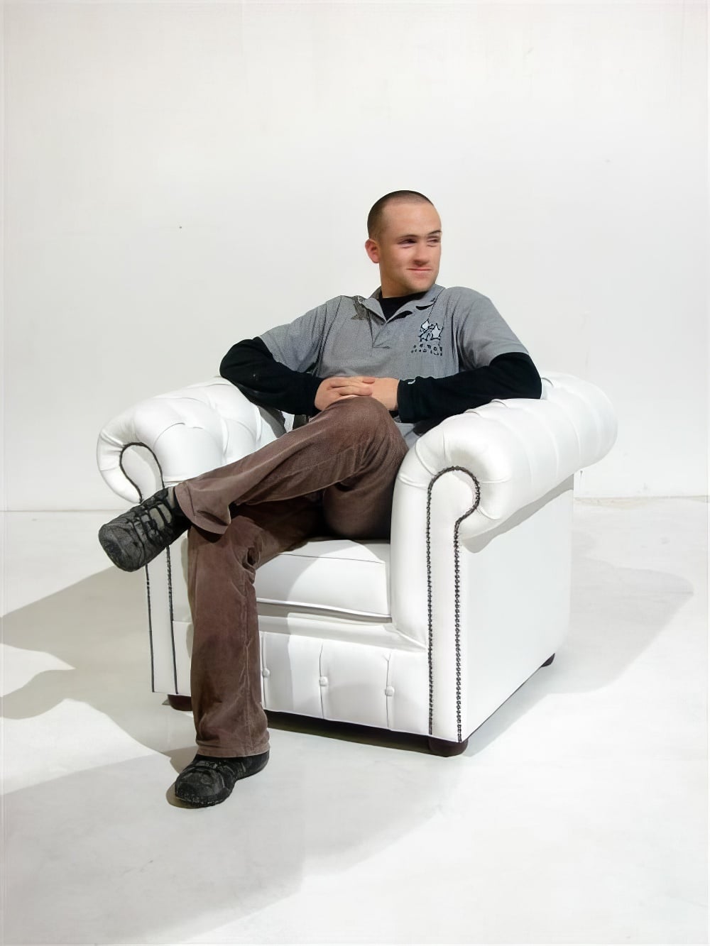 White Leather Club Armchair to hire. This furniture to hire is perfect for any break out area where you want to add a cool degree of class & sophistication. This prop to hire is part of a matching set including Chesterfield Sofas & Cube Seating (Available seperately).