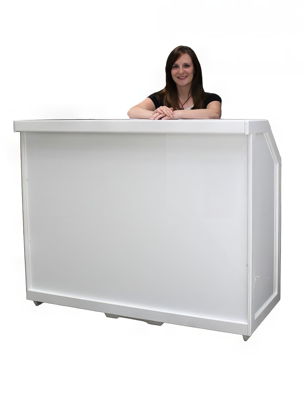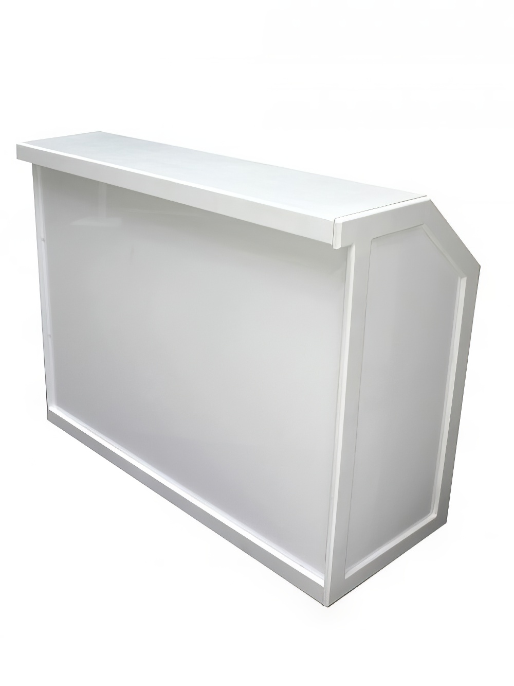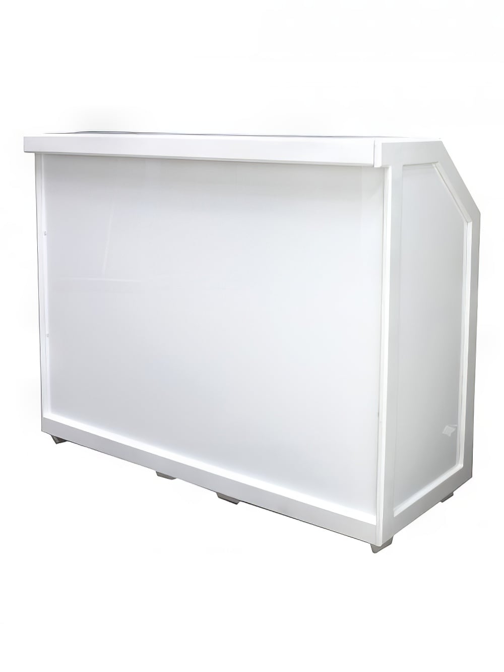 White Drinks Bar to hire. This is a stunning white acrylic bar that would be suitable for any winter styled theme.
