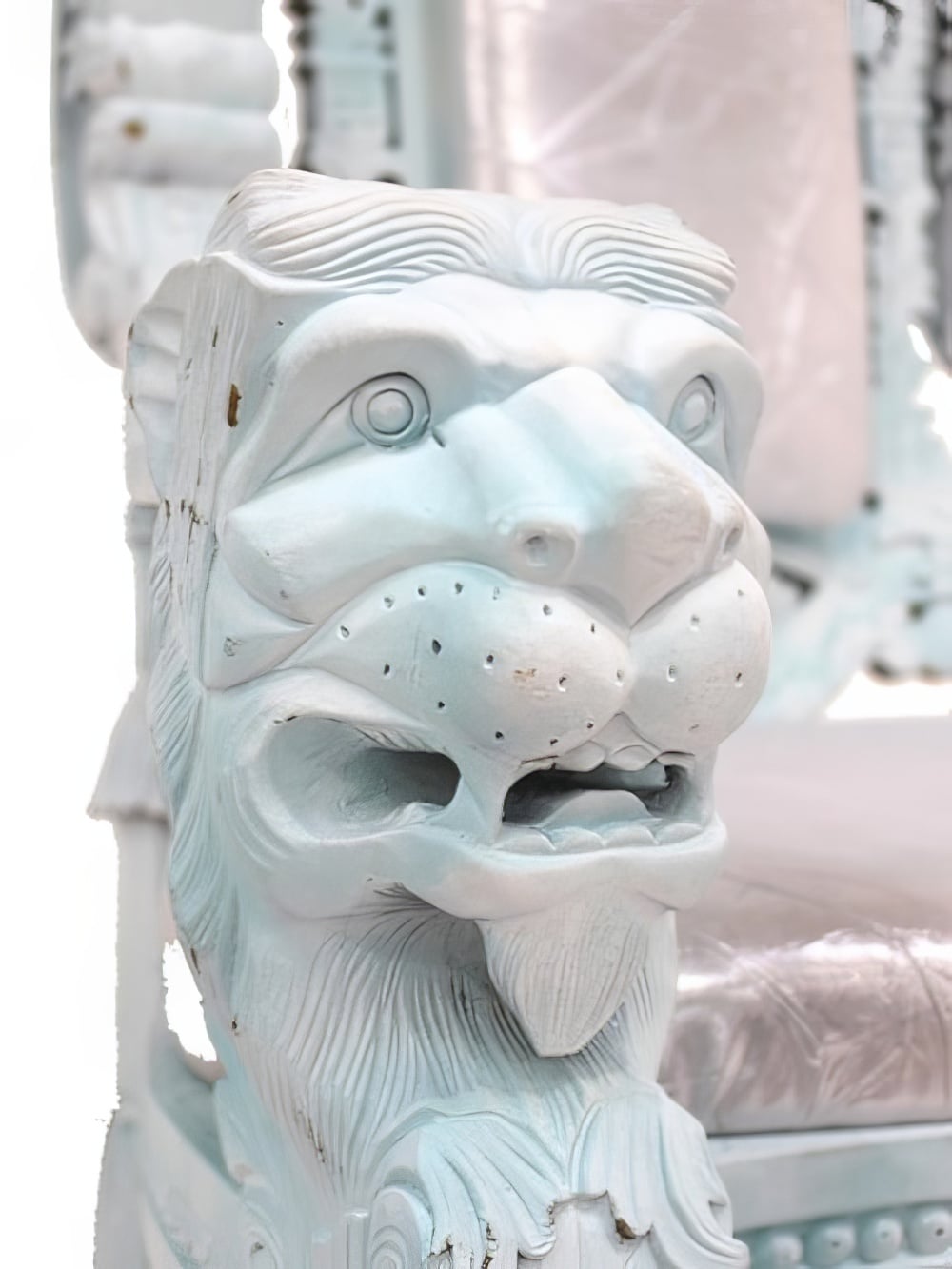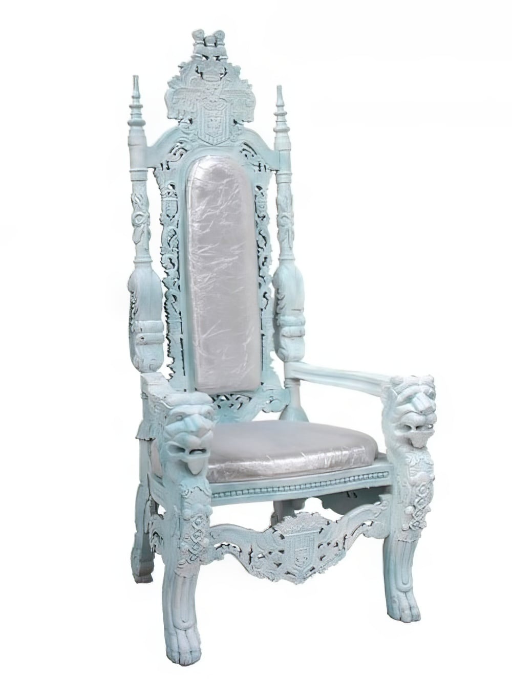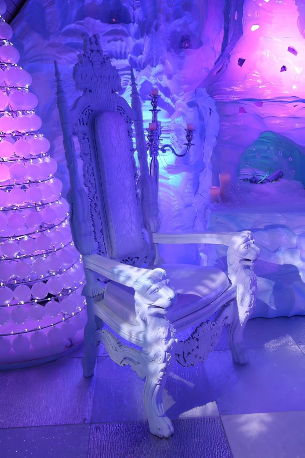 White Winter Throne ย to hire. Sit back in style at your Winter, Narnia or Ice themed event with this beautiful ice white throne. Intricately designed, this throne would look amazing at your event or party.