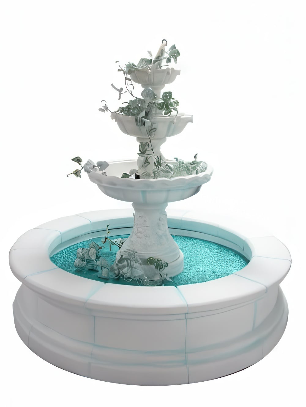 Working Fountain finished in white with cool blue highlights.