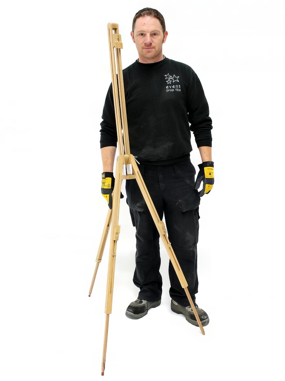 Wooden Artists Easel to hire. This ย wooden artists easel is suitable to mount a small sign or framed picture on, including a number of signs we can supply such as our VIP Welcome sign.