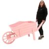 Wooden Wheelbarrow ย– Pink to hire. This pastel wheelbarrow would look amazing filled with wildflowers to create a lovely spring/summer display at your party or event.
