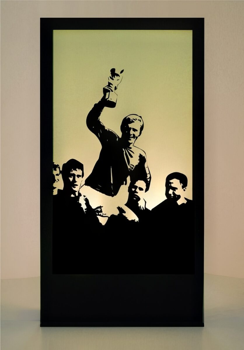 World Cup Icon Silhouette Panel to hire. Perfect for your football or sport themed event or party. Please note that the actual lighting ย colour ย may vary from that shown. ย All ย lights have a ย 1m ย lead and it is the responsibility of the client to provide extension leads if longer leads are required. The price quoted includes one supplied light.