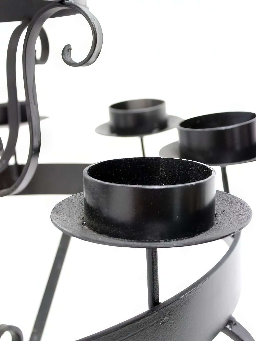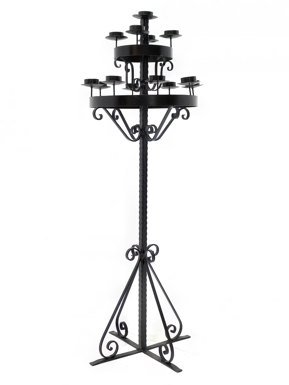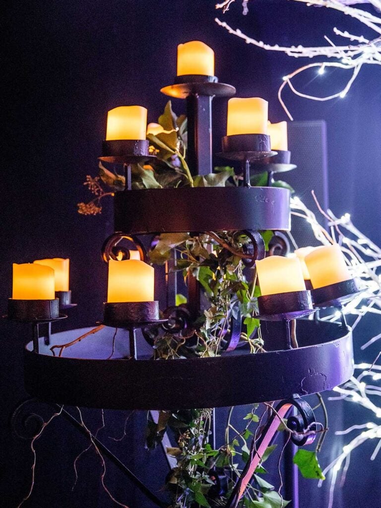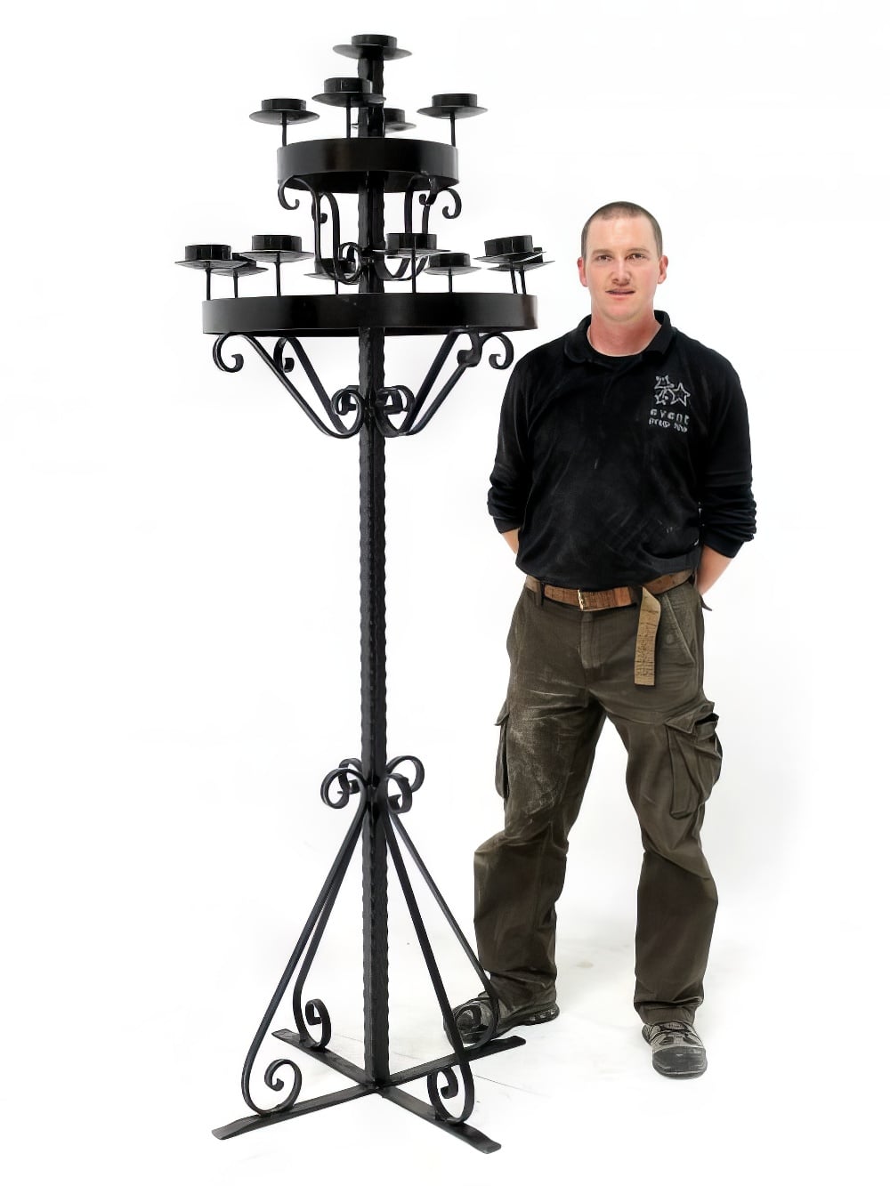 Wrought Iron Candelabra prop to hire. This candelabra prop is made from iron, giving it some real weight & authenticity to your ย Wedding, Medieval or Halloween themed party or event.