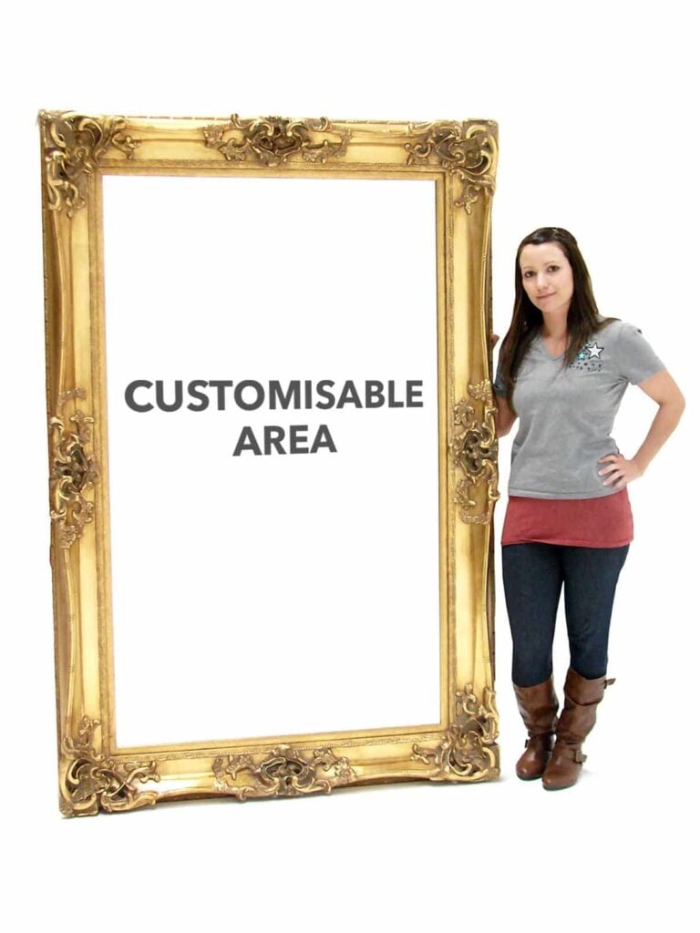 We can create the customised artwork for your event. We have a highly skilled team of graphic designers who can help you with the customisation of our large ornate frames. We can design customised graphics to suit your event theme. Contact us for more details.