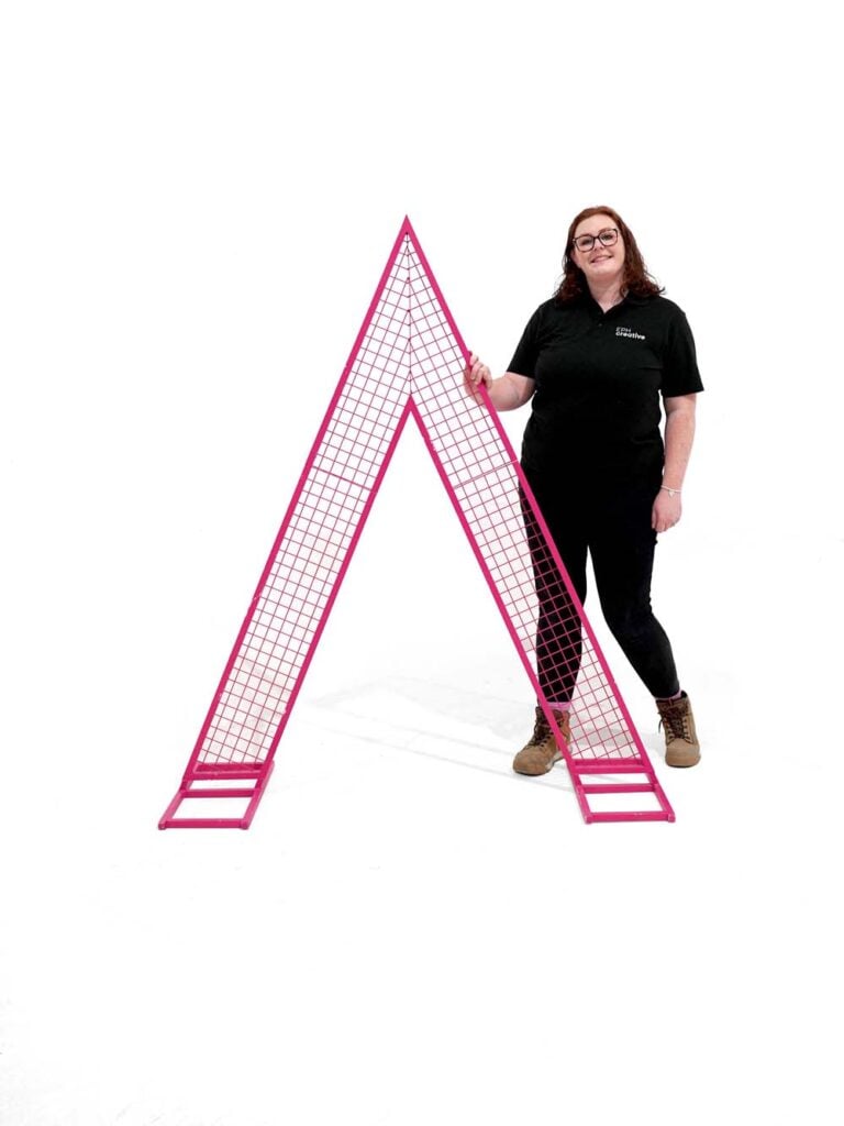 Customised Pink Framed Sign with a Custom Insert for hire.