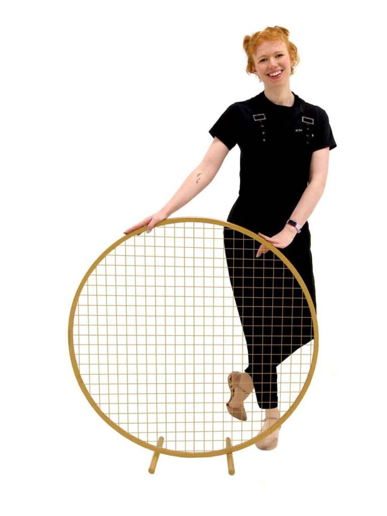 This gold frame makes the perfect base to a styled backdrop. The mesh frame allows you do dress and attach items easily, such as lighting or a floral display.