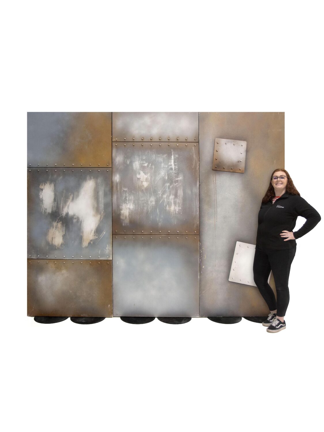 Industrial Metal Effect Backdrop Rivetted Frame Edge (Style May Vary) Large to hire.