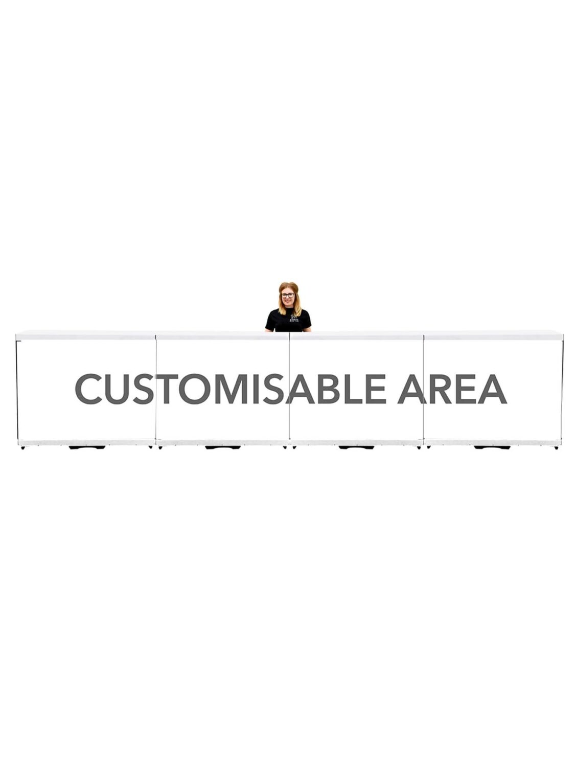We have a highly skilled team of graphic designers who can help you with the customisation of our 6m long white drinks bar.