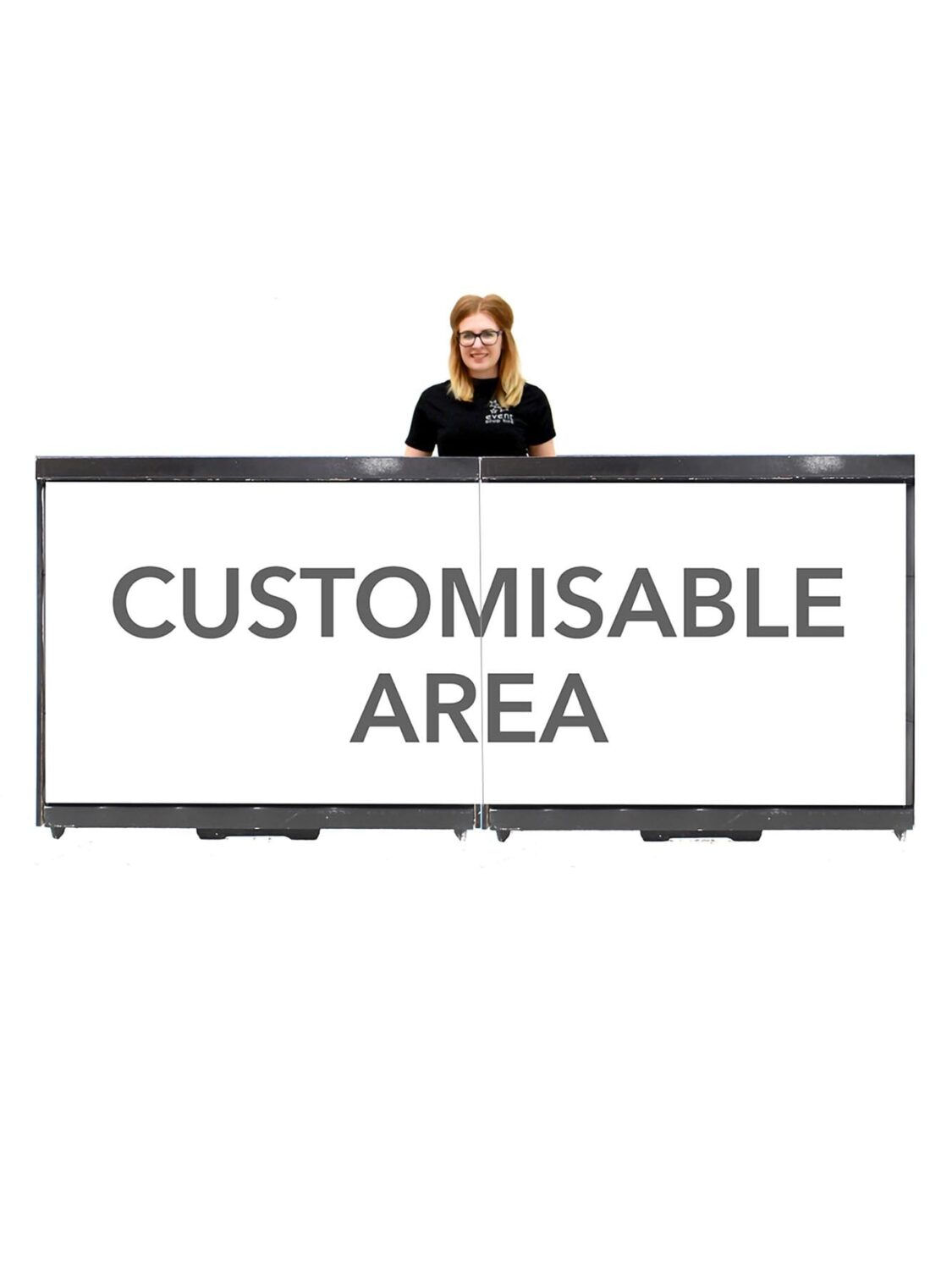 We can create the customised artwork for your event. We have a highly skilled team of graphic designers who can help you with the customisation of our 10.5m long black drinks bar. We can design customised graphics to suit your event theme. Contact us for more details.