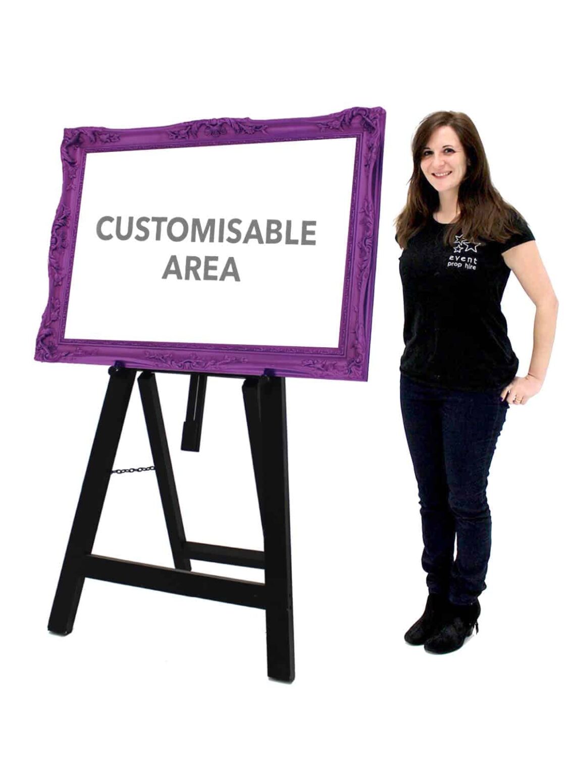 We can create the customised artwork for your event. We have a highly skilled team of graphic designers who can help you with the customisation of our Purple ornate frame VIP / Welcome Sign. We can design customised graphics to suit your event theme. Contact us for more details.