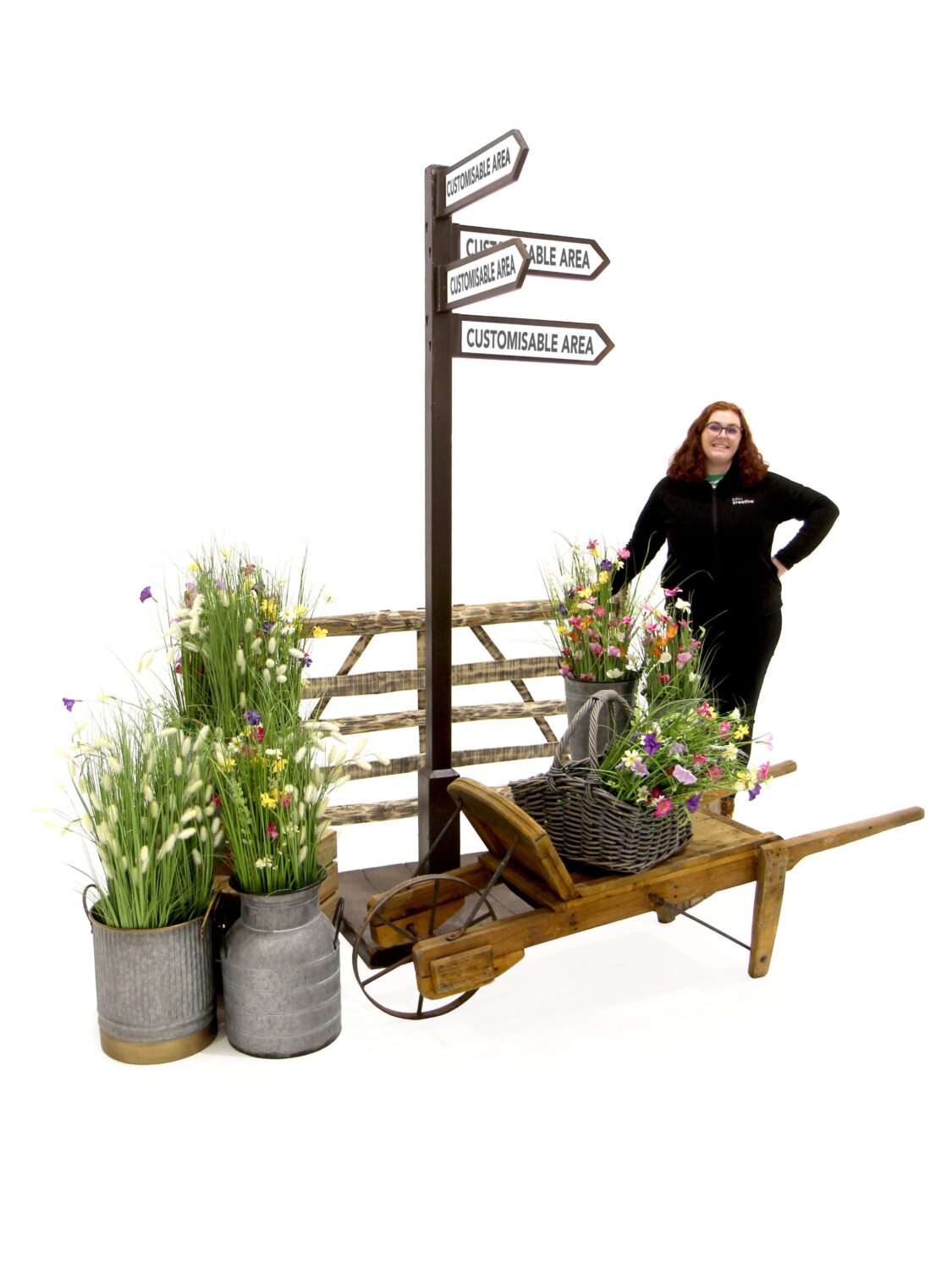 This signpost is very cleverly designed so that the directional arms can be rotated to point in different directions; allowing you full flexibility to highlight different locations within your themed event.