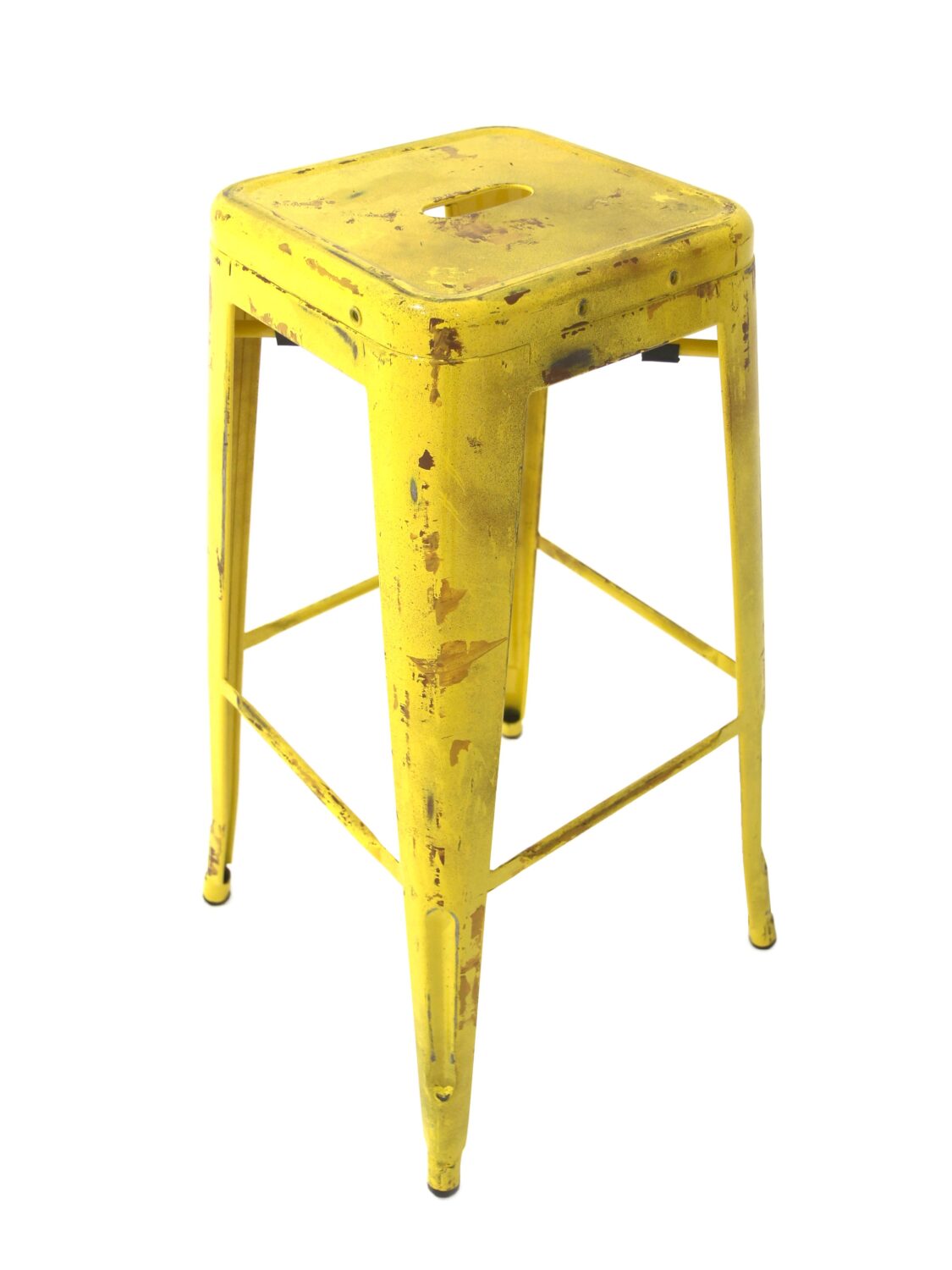 White metal Tolix style industrial stool, can be hired as a pair, or with other metal furniture, for your bar or seating area.