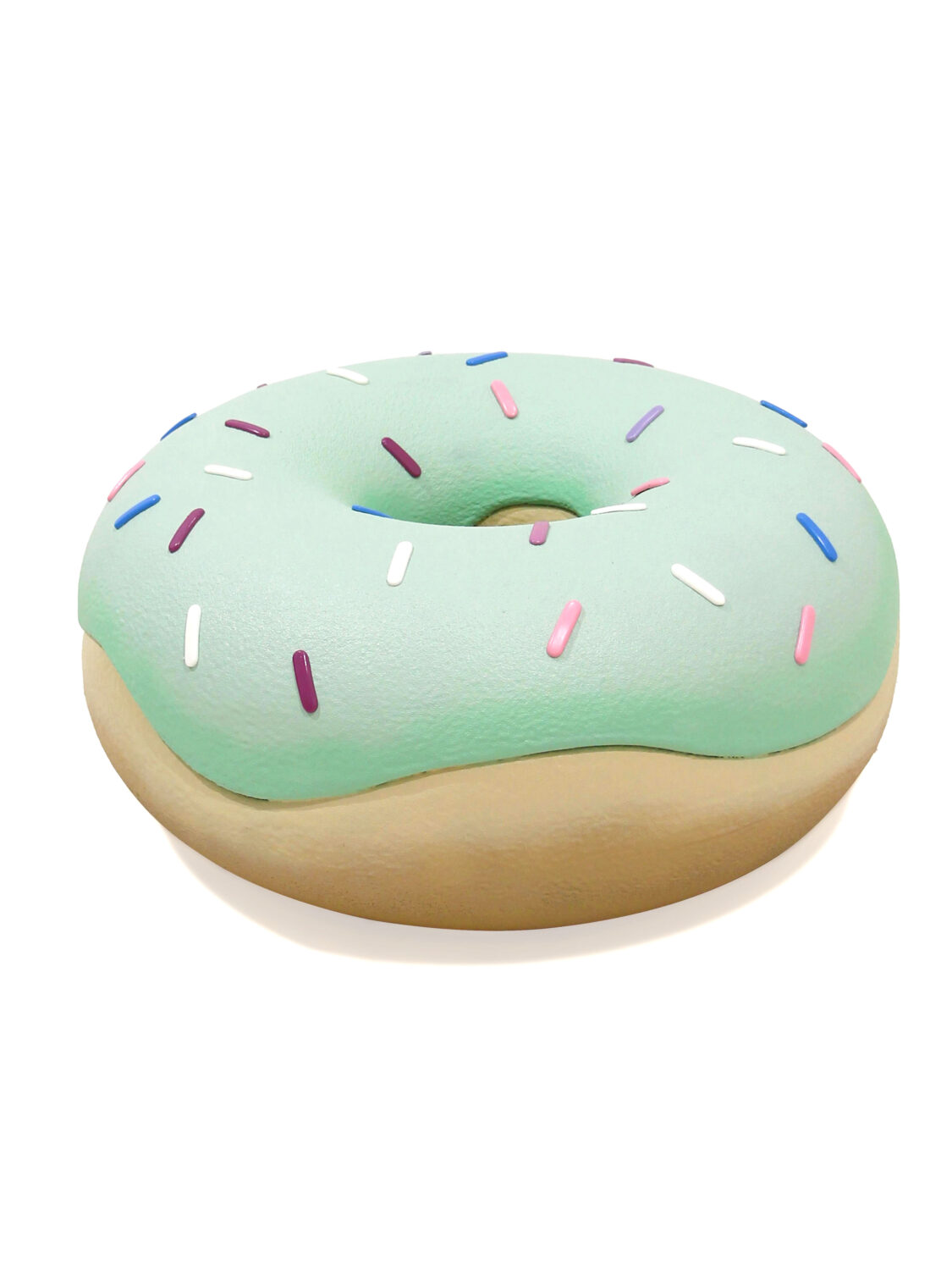 Our green iced Giant Doughnut with rainbow sprinkles looks good enough to eat. Perfect alongside our key Charlie and the Chocolate Factory themed props to help create a magical wonderland of giant sweets. Pair with our Giant Candy Canes, Macaroons and Lollipops to make a mouth-watering montage.