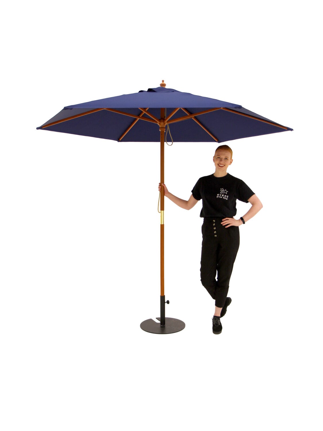 Hexagonal in shape and 2m wide this is a quality product, constructed with a heavy duty wooden frame and a water resistant canopy. Simply pull the cord, place the pin in the hole and your parasol is ready for your event!