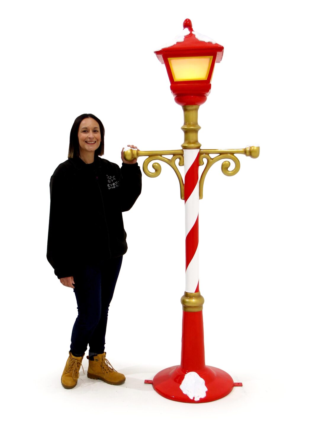 Add our snow topped, candy cane style lamp post with gold ornate detail to any Fairy-tale Christmas, Candy land or snowy Winter Wonderland inspired themed event.