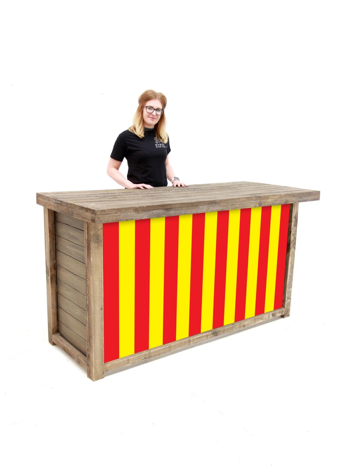 We sill supply you a custom printed panel on 2mm thick foamed board that slots into the top sign of the stall. The vibrant red of the stall provides a versatile base that suits exciting themes and bright colour schemes.