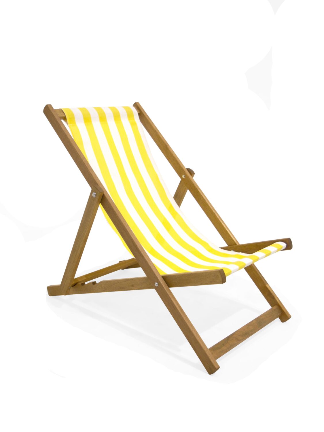 Traditional Seaside Deck Chair in Yellow and White Stripe to hire.